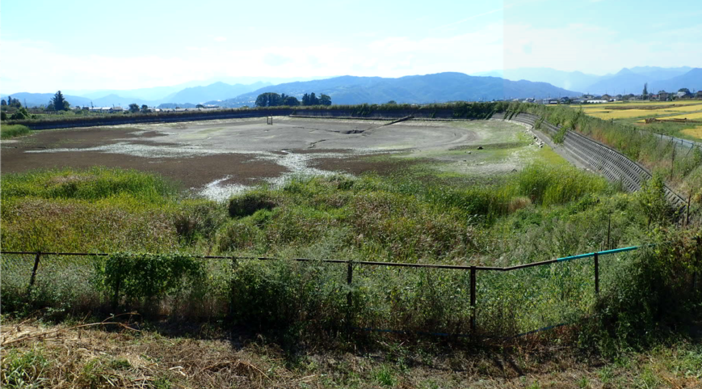 上田市芳田にある吉田池の補修工事です。